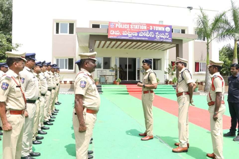 భద్రాద్రి కొత్తగూడెం జిల్లా ఎస్పీ రోహిత్ రాజు ఐపిఎస్ కొత్తగూడెం 3టౌన్ పోలీస్ స్టేషన్ ను మంగళవారం సందర్శించారు. ముందుగా కొత్తగూడెం డిఎస్పి రెహమాన్ పుష్పగుచ్చం అందించి జిల్లా ఎస్పీ గారికి స్వాగతం పలికారు. అనంతరం పోలీస్ స్టేషన్లో విధులు నిర్వర్తించే సిబ్బంది నుండి గౌరవ వందనాన్ని స్వీకరించారు. కొత్తగూడెం త్రీ టౌన్ పోలీస్ స్టేషన్లో విధులు నిర్వర్తించే సిబ్బంది యొక్క ప్రభుత్వ కిట్ ఆర్టికల్స్ ను ఎస్పీ తనిఖీ చేశారు. ఈ సందర్భంగా పోలీస్ స్టేషన్ పరిసరాలను పరిశీలించారు. అనంతరం అక్కడ ఉన్న పోలీస్ అధికారులు మరియు సిబ్బందికి పలు సూచనలు చేశారు. పోలీస్ స్టేషన్ పరిసరాలను ఎప్పటికప్పుడు పరిశుభ్రంగా ఉంచుకోవాలని, వివిధ సమస్యలతో పోలీస్ స్టేషన్కు వచ్చే బాధితులకు న్యాయం చేకూర్చే విధంగా బాధ్యతగా మెలగాలని సూచించారు. అనంతరం పోలీస్ స్టేషన్ పరిధిలో నమోదైన పలు కేసుల వివరాలను అడిగి తెలుసుకున్నారు. పెండింగ్లో ఉన్న కేసుల సత్వర పరిష్కారానికి ప్రతి ఒక్కరూ కృషి చేయాలని తెలిపారు. పోలీస్ స్టేషన్లో వర్టికల్స్ వారీగా విధులు నిర్వర్తించే సిబ్బందిని ఒక్కొక్కరిగా వారి పనితీరు గురించి పరిశీలించారు. పోలీస్ స్టేషన్ పరిధిలో అసాంఘిక కార్యకలాపాలకు పాల్పడే వ్యక్తులపై చట్టపరంగా కఠిన చర్యలు తీసుకోవాలని సూచించారు. ప్రజలు సైబర్ నేరాల బారిన పడకుండా నిత్యం పోలీస్ స్టేషన్ పరిధిలోని ప్రజలకు అవగాహనా కార్యక్రమాలను ఏర్పాటు చేయాలని తెలిపారు. పెట్రోలింగ్,బ్లూ కోల్ట్స్ వాహనాలతో సంచరిస్తూ నిత్యం ప్రజలకు అందుబాటులో ఉండాలని సూచించారు. డయల్ 100 కు ఫోన్ రాగానే సంఘటనా స్థలానికి చేరుకొని బాధితులకు అండగా నిలవాలని సూచించారు. పోలీస్ స్టేషన్లో పనిచేసే అధికారులు, సిబ్బంది సమస్యలను అడిగి తెలుసుకున్నారు. అనంతరం పోలీస్ స్టేషన్ ఆవరణలో వన మహోత్సవం కార్యక్రమంలో భాగంగా జిల్లా ఎస్పీ తో పాటు అధికారులు మరియు సిబ్బంది మొక్కలను నాటారు. ఈ కార్యక్రమంలో కొత్తగూడెం డిఎస్పీ రెహమాన్, సీఐ శివ ప్రసాద్,ఎస్సైలు పురుషోత్తం, విజయ కుమారి మరియు సిబ్బంది పాల్గొన్నారు.