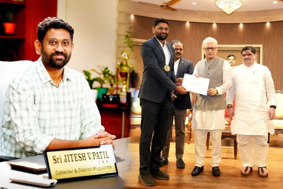 గవర్నర్ చేతుల మీదుగా అవార్డు అందుకున్న జిల్లా కలెక్టర్ జితేష్ వి.పాటిల్